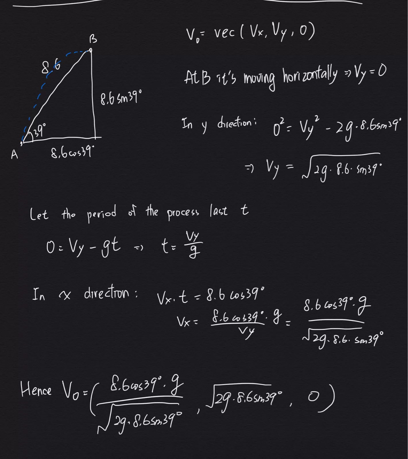 Determine the initial velocity veetor so that the bar reaches your fiend, its moving horizontay