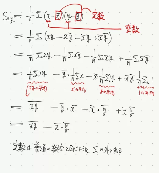 sxy/sx*syの公式をどう変形したら3枚目の写真の形になるのでしょうか