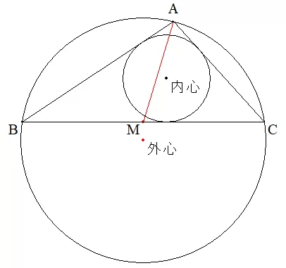 三角形ABCにおいて、a=4、b=√5、c=3とする。線分BCの中点をMとするとき、次の値をもとめよ。(1)cosBの値(2)sinBの値(3)三角形ABCの面積(4)外接円の半径(5)内接円の半径(6)線分AMの長さ