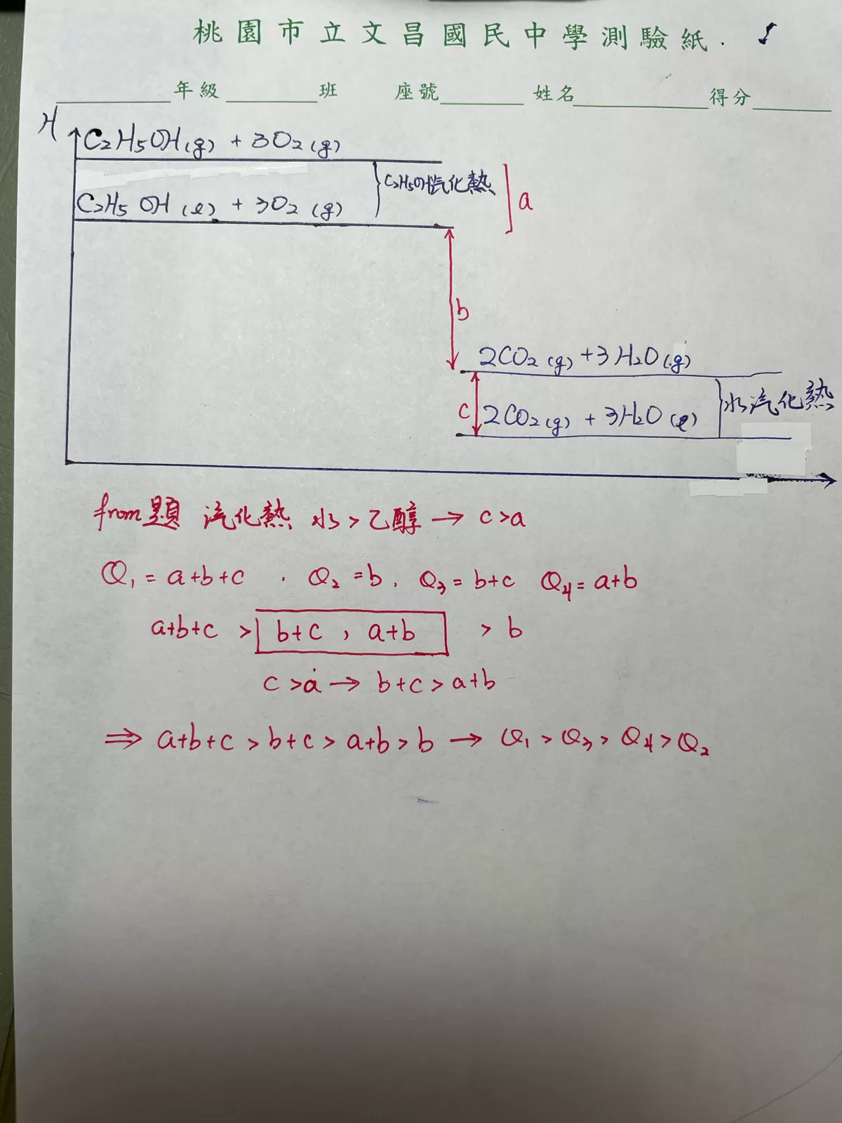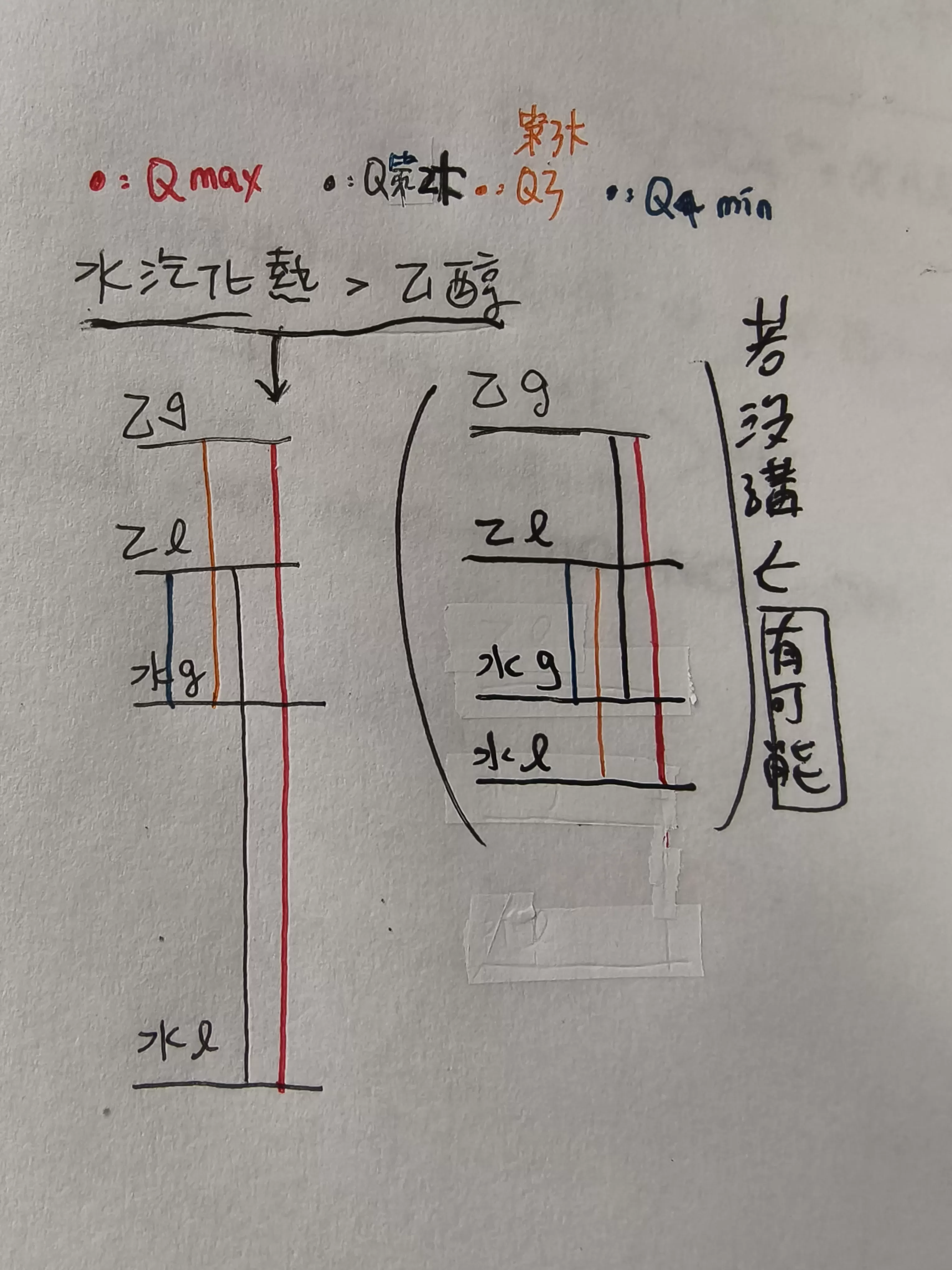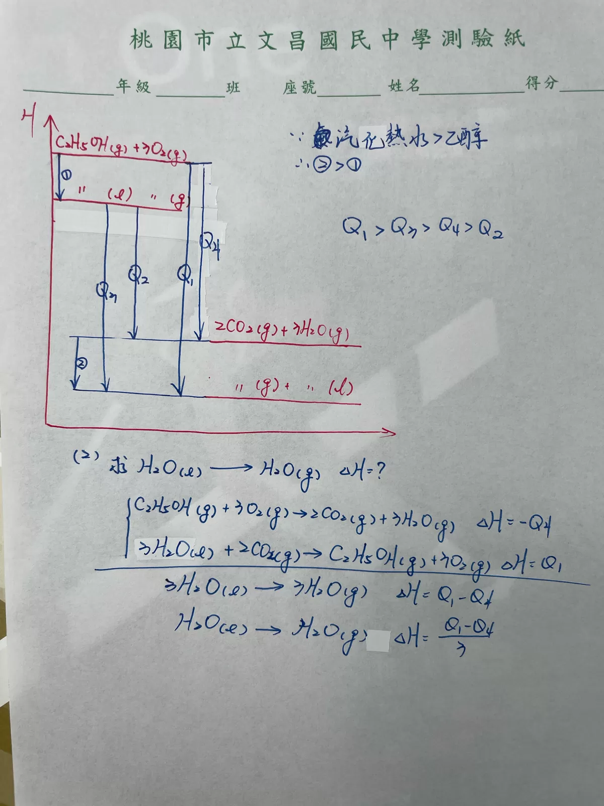 (1)Q1、Q2、Q3、Q4大小順序為何?液→氣態