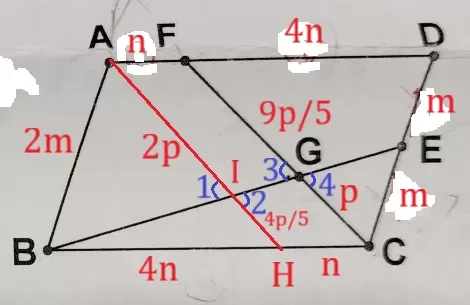 可設(線段AI)長度為2p,(線段CG)長度為p,