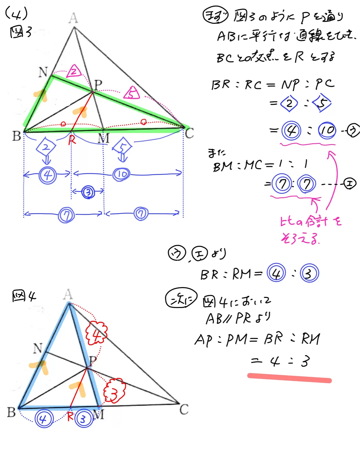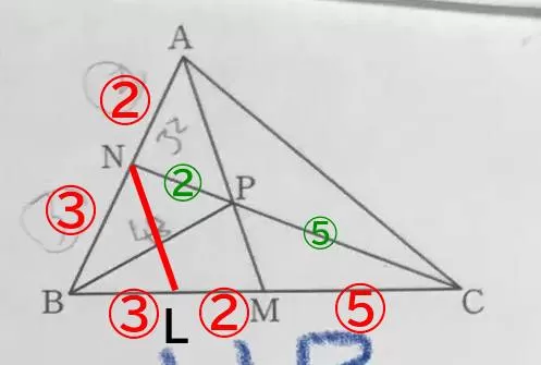 よって、△BPN:△BPC=NP:PC から
