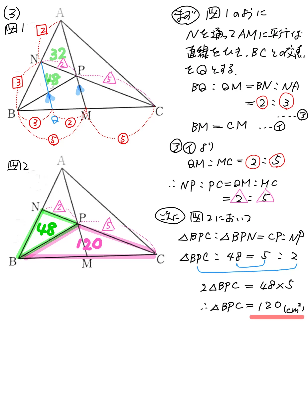 交点をPとする。 APNと△BPN の面積がそれぞれ