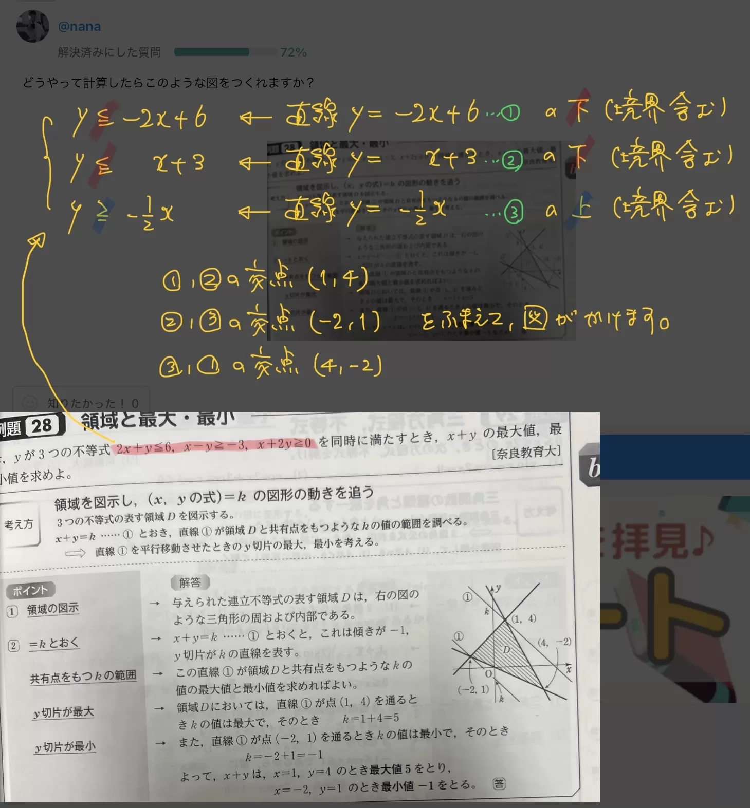 それぞれy=…のような形にし、共有点の座標を出します