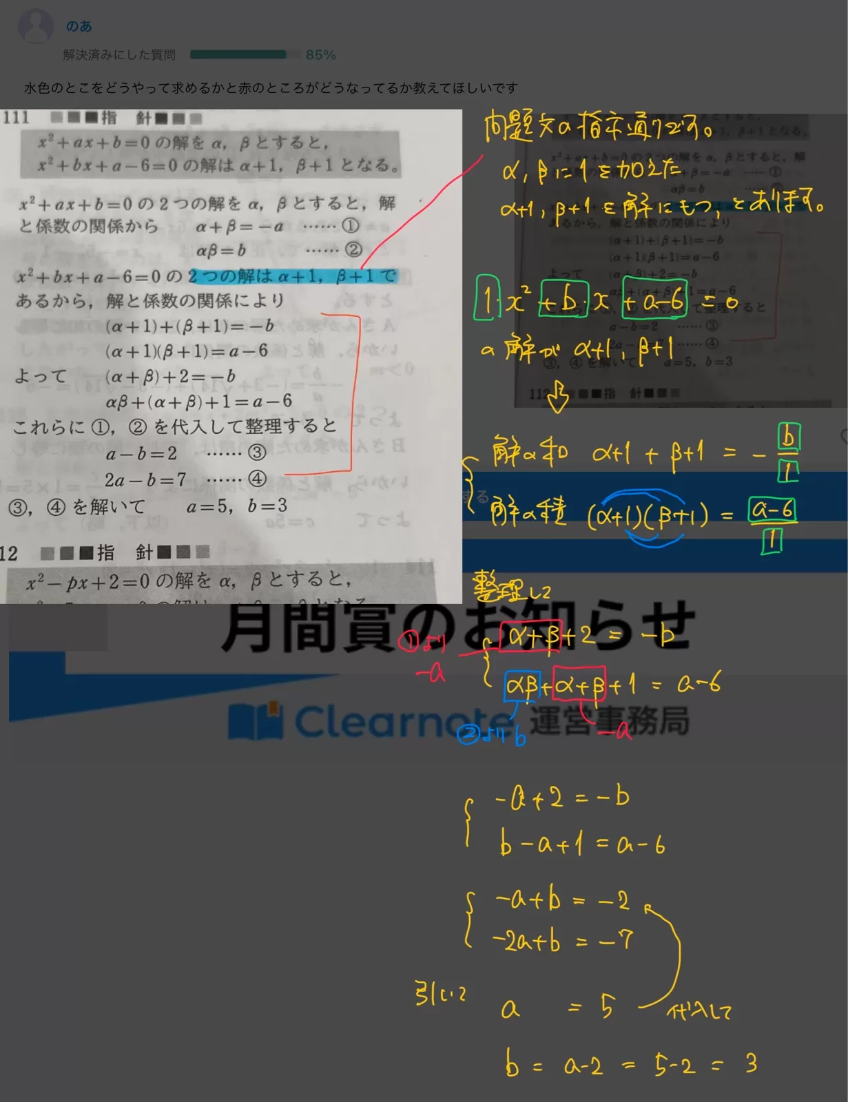 ここではp=bなので、解の和=-b