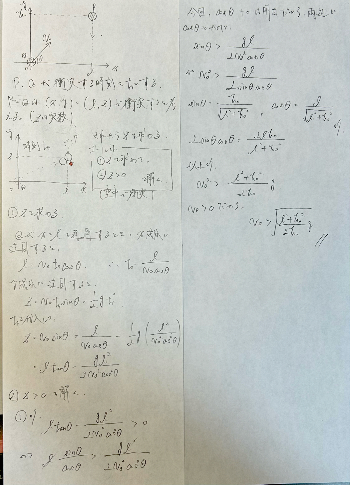 (3)さて,2つの物体PQの衝突について考えてみる。 QがPに命中するために