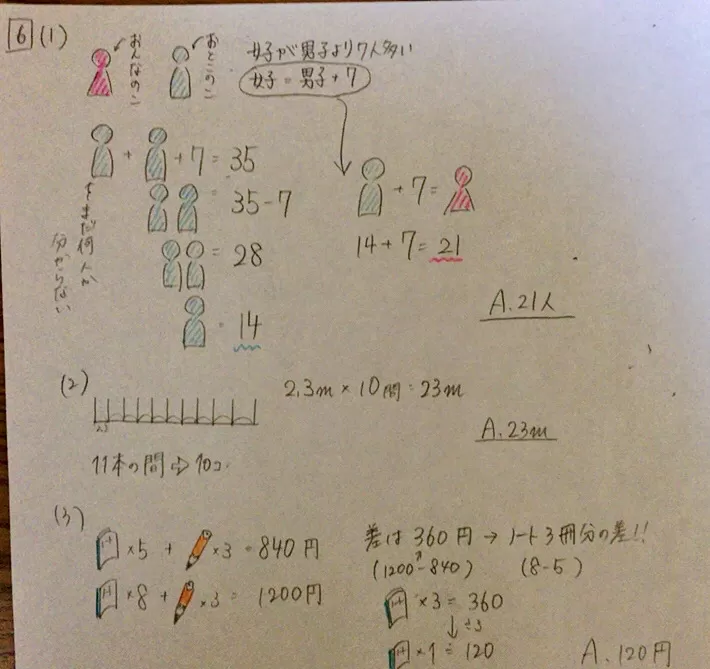 2) 学年全体の人数は140人である。男子の人数は何人か求め