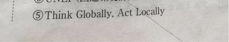 地球規模で環境問題を考え、一人ひとりが地域で行動をしようという考え方を英語でなんと言いますか?