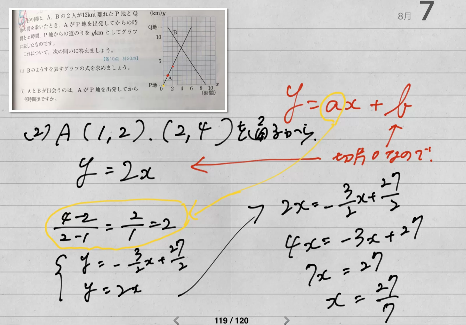 (2 2人が出会うのはグラフの交点です。A, B2 人