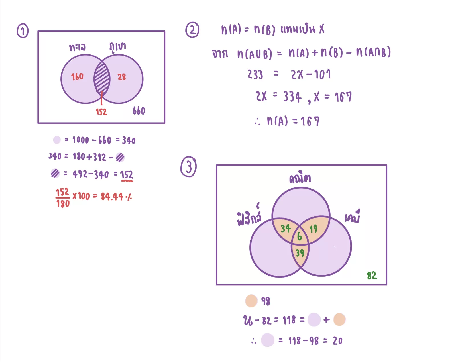 82 คน มีนักเรียนกี่คนที่เรียนเพียงวิชาเดียว *