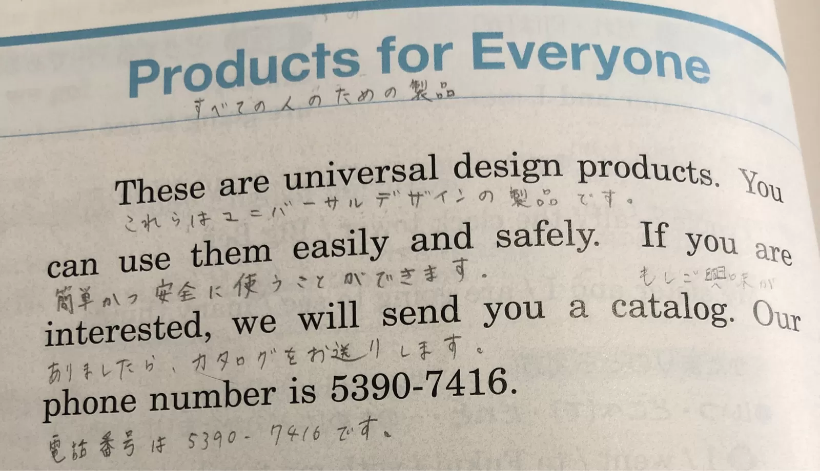 ⑤Our phone number is 5390-7416.