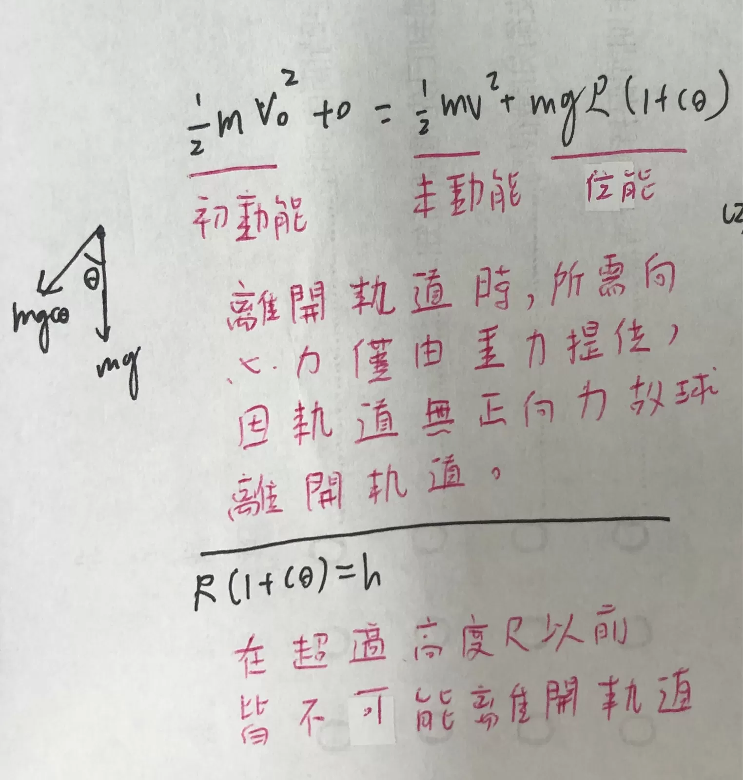 力mg cos = m_v=gRcose