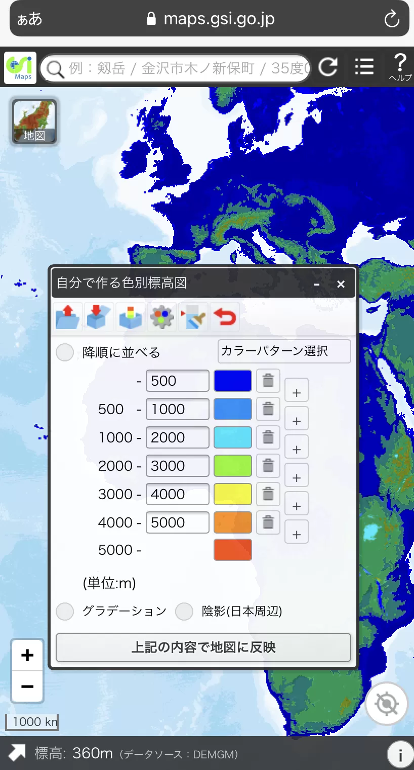 https://maps.gsi.go.jp/index_m.html#8/45.918677/7.849731/&base=std&ls=std%7Crelief_free&blend=1&disp=11&lcd=relief_free&vs=c1j0h0k0l0u0t0z0r0s0m0f1&reliefdata=01F4G0000FFG3E8G0095FFG7D0G00EEFFGBB8G91FF00GFA0GFFFF00G1388GFF8C00GGFF4400