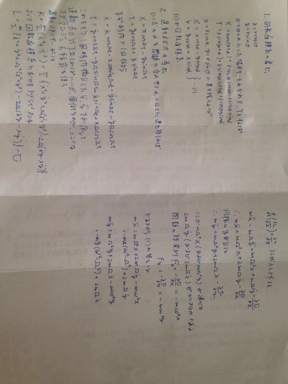 であるとする。回転座標系での運動方程式(のz成分、y成分)を書け。