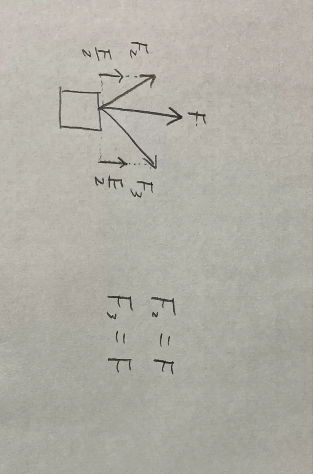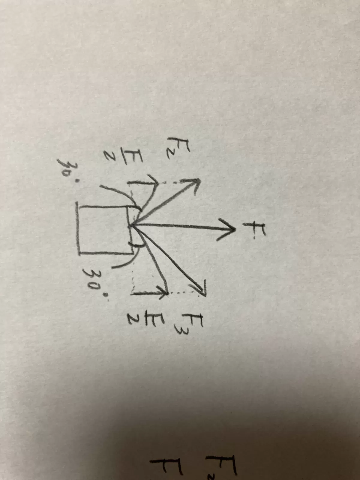 3の間の角度を変えると変化する。 分力 F, F,の大きさが F, = F, F,