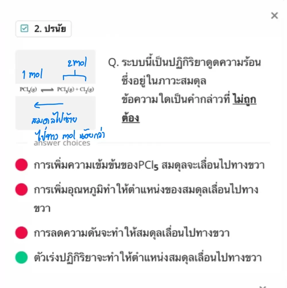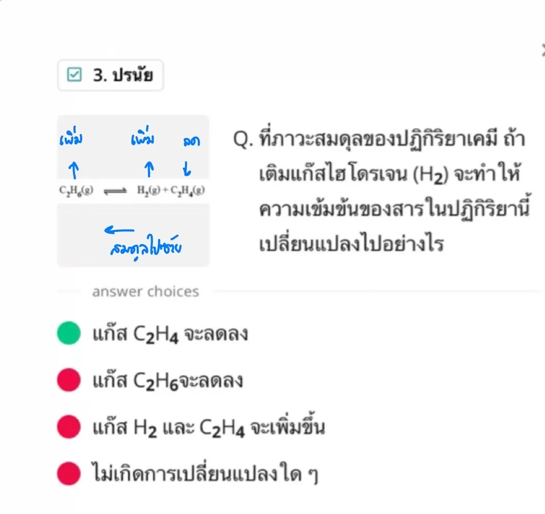 Q. ที่ภาวะสมดุลของปฏิกิริยาเคมี ถ้า