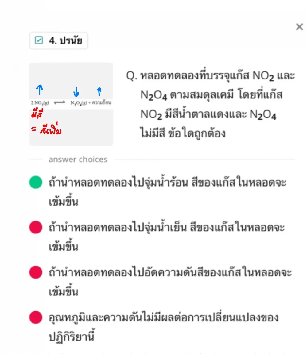 ถ้านำหลอดทดลองไปจุ่มน้ำร้อน สีของแก๊สในหลอดจะ