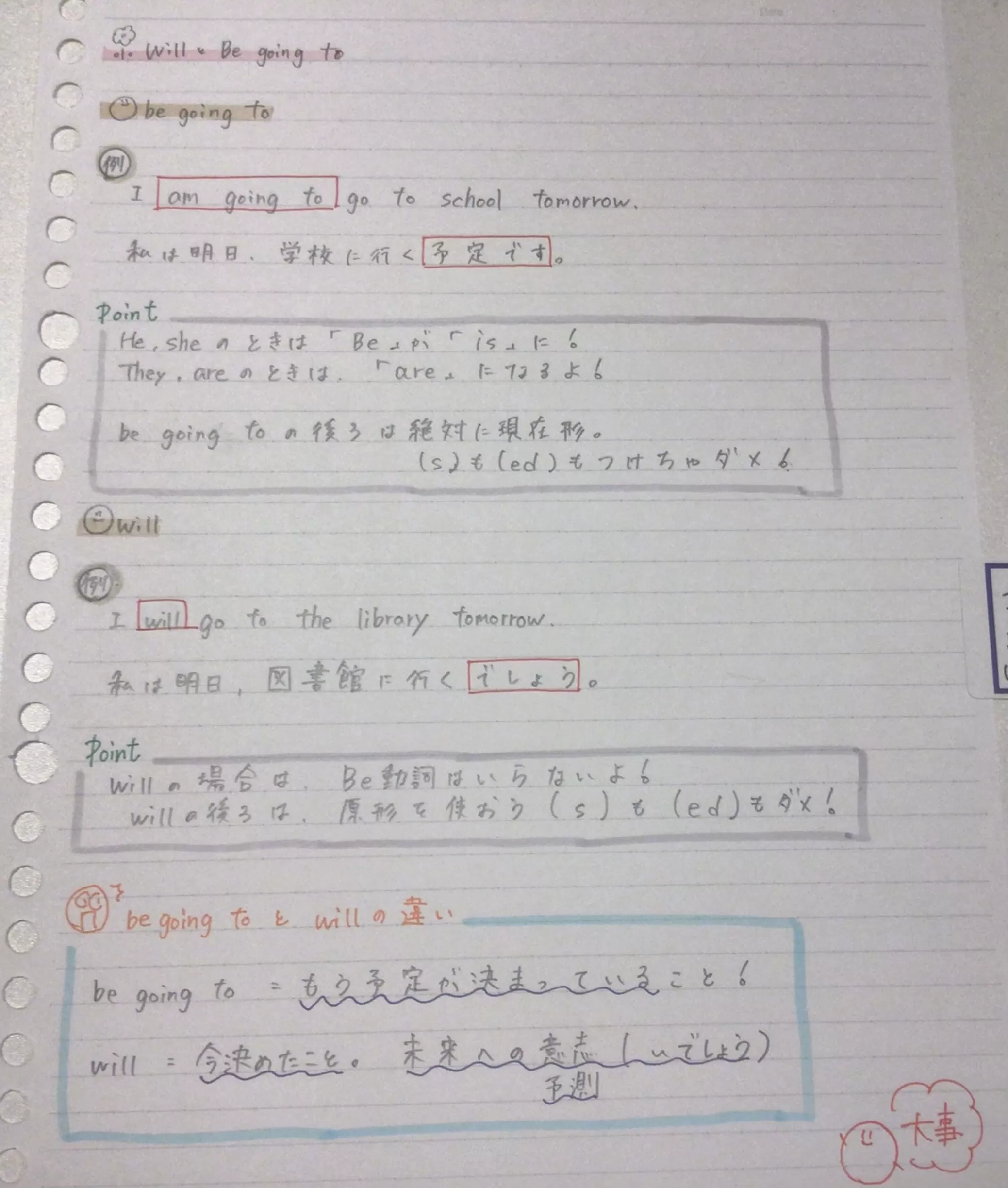 英語のbe going to とwill(未来形)まとめれるかな?