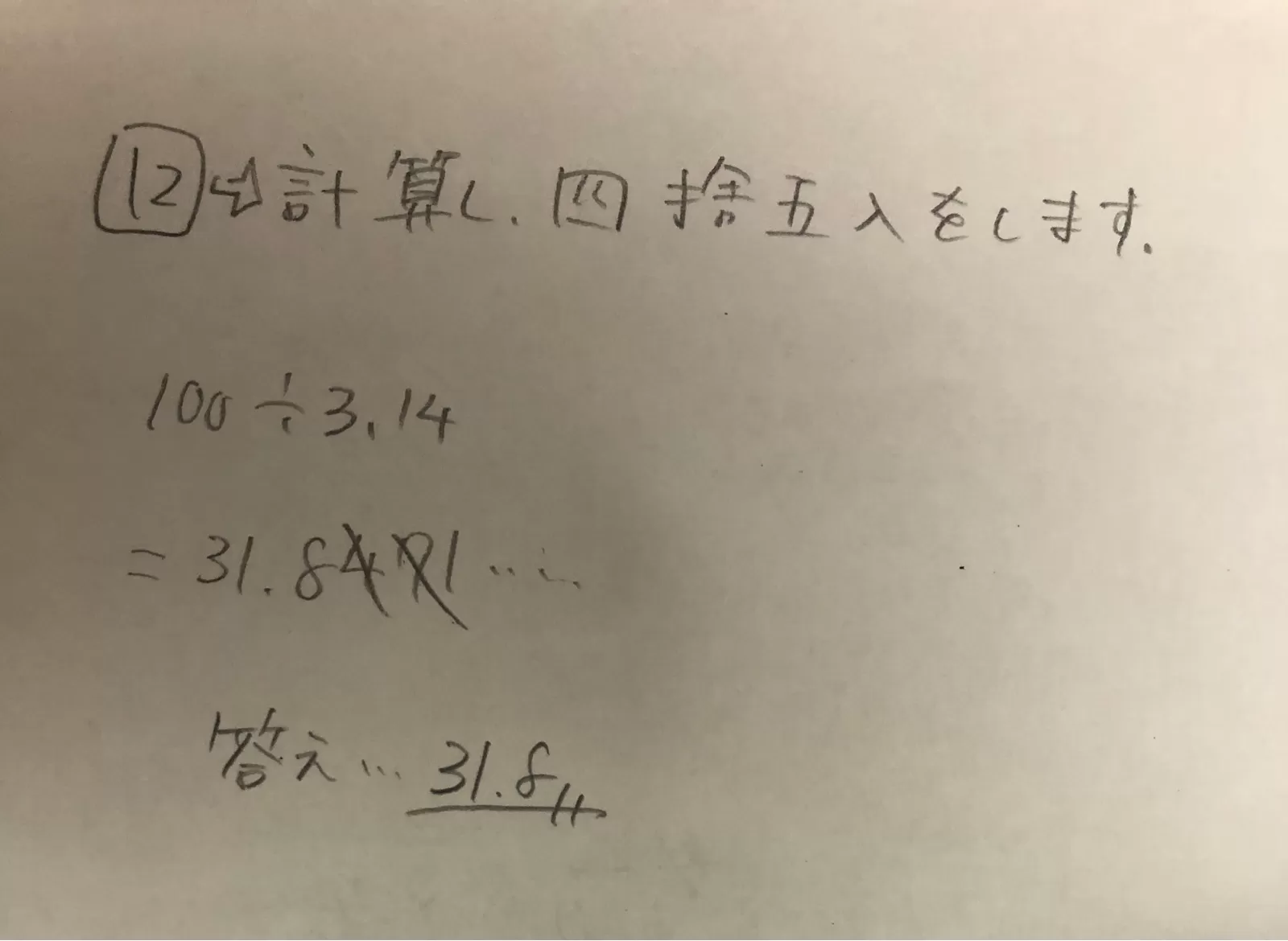 100÷3.14の商を,四捨五入で,