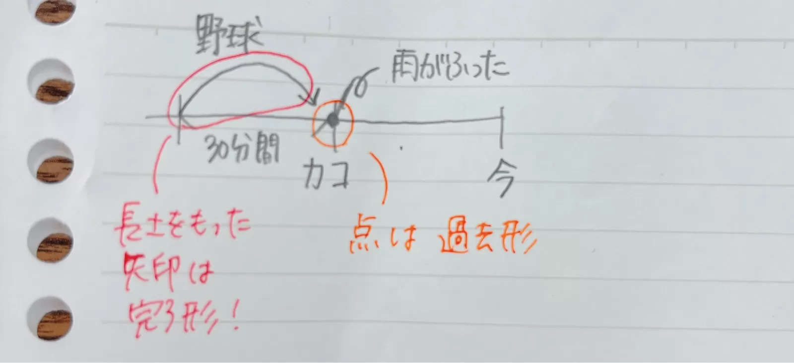 ②現在完了なので (今)野球している