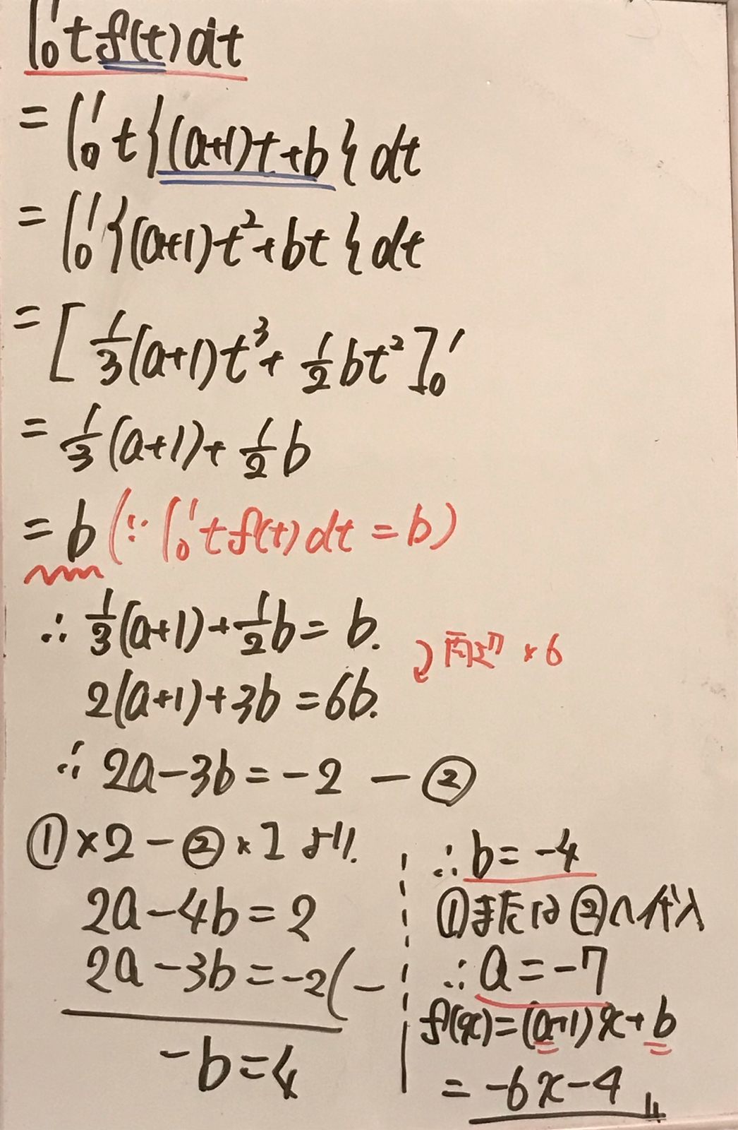 これらを①に代入して f(x)=-6x-4