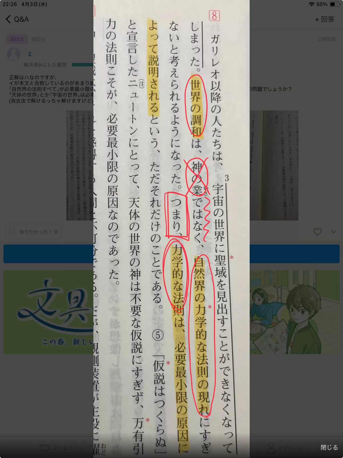 ここで、力学的な法則と限定しているじゃないか!!と思うかもしれませんが、この文で言いたいことは、「世界の調和は自然界の力学的な法則でしか成り立っていない」ということなので、結果的に自然界の法則すべては力学的なものということになります。