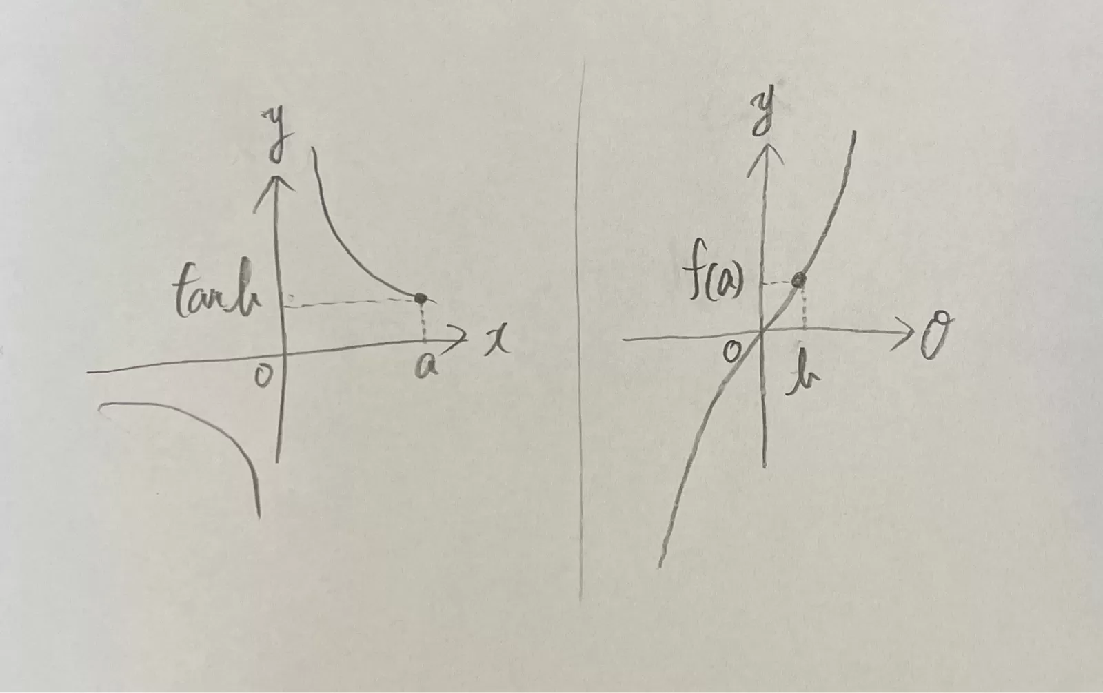 私はグラフでずっと考えていました。関数とグラフをごちゃごちゃにしてしまっていました。グラフで考えるとxを決めればf(x)が決まりそれを=でtanθと結ぶから横軸が違って縦軸は同じということで合ってますか。