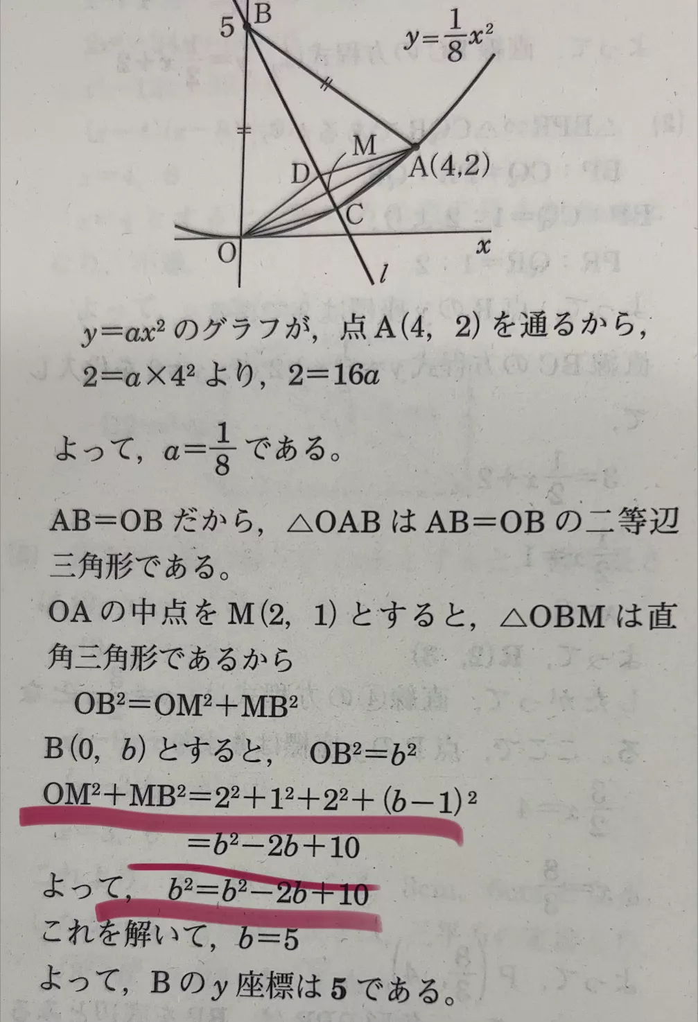 また、OBの長さですが、Oの座標が(0,0)、Bの座標が(0,b)です。いま、OBのながさはY軸方向の座標から分かることなので、OとBのY座標の差 b-0で、bです。