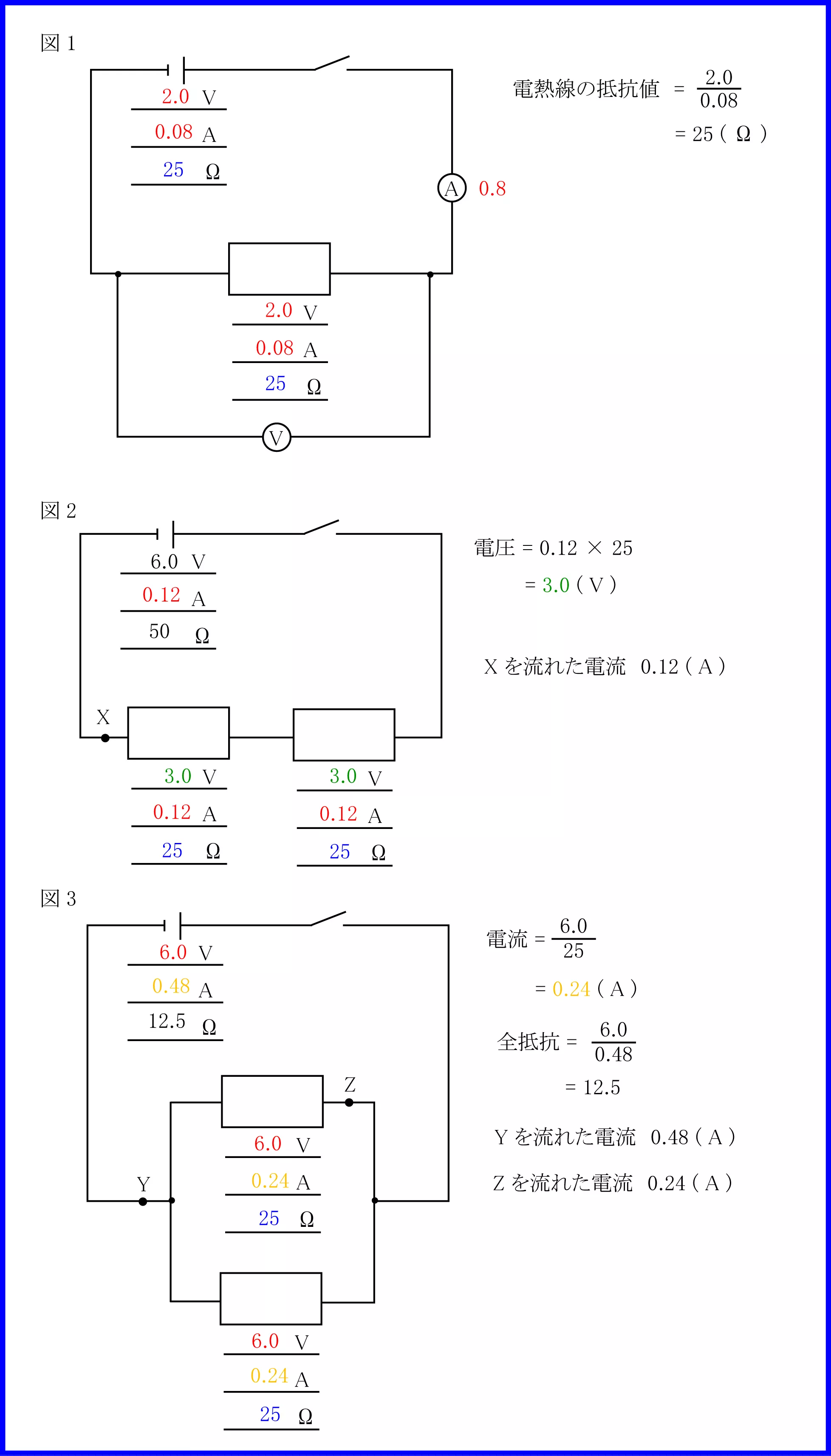 した。 次に,図1と同じ電熱線を2つ用いて、 図2,3の回路をつくった。
