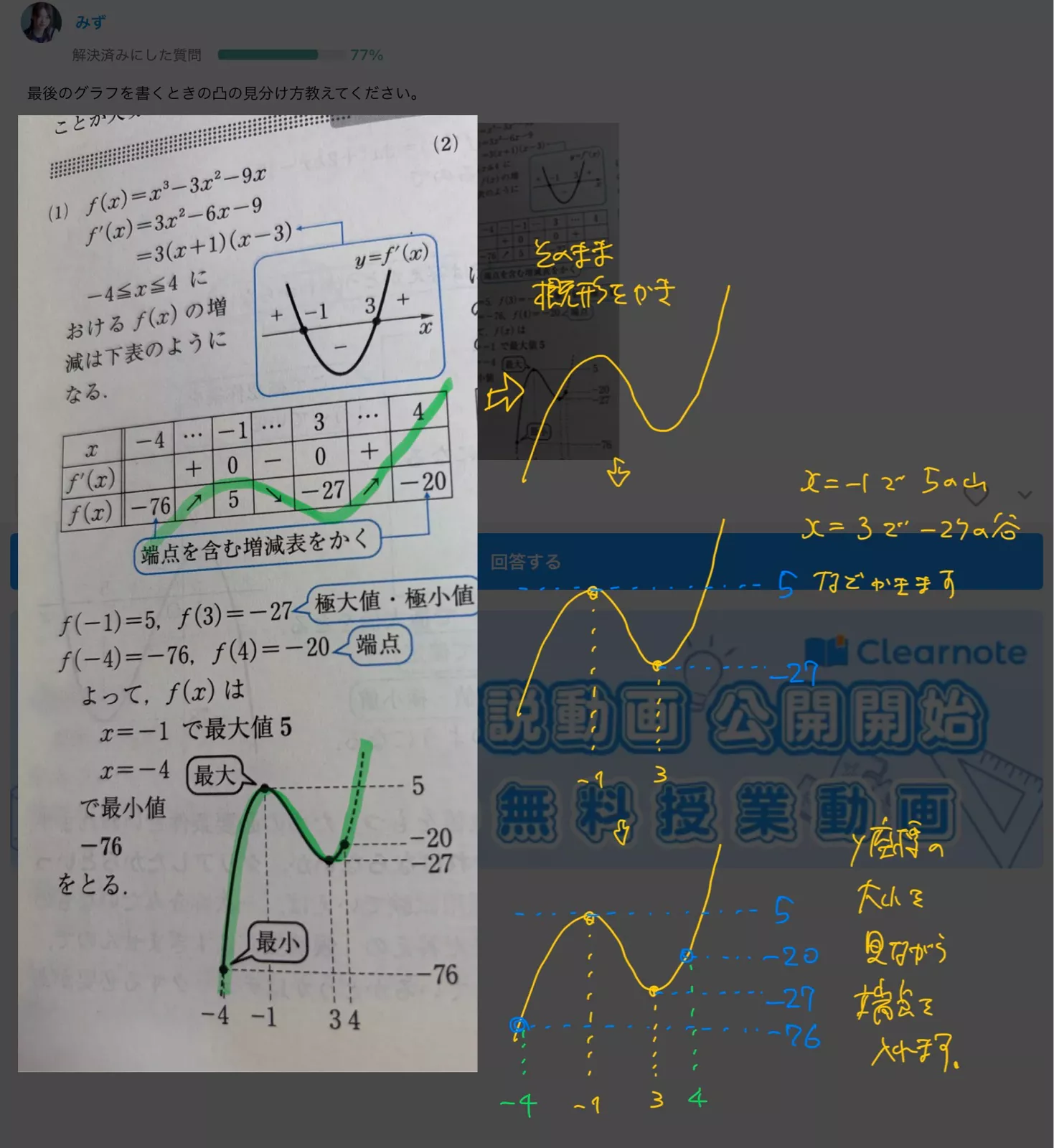 最後のグラフを書くときの凸の見分け方教えてください。