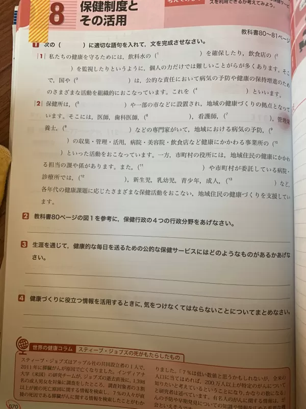 現代高等保健体育のノートを持っている方いませんか?ノートの8保健制度とその活用〜11さまざまな保健活動や対策までと5食品衛生活動のしくみと働き〜9健康的な職業生活までを送ってもらえませんか。