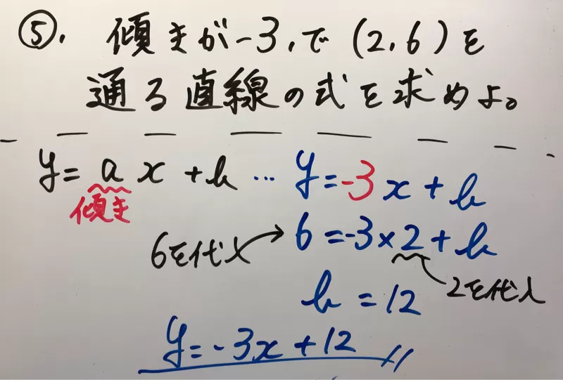 ⑧ 傾きが- 3で, 点(2.6)を通る直線の @⑥ 点62、 2生還 6