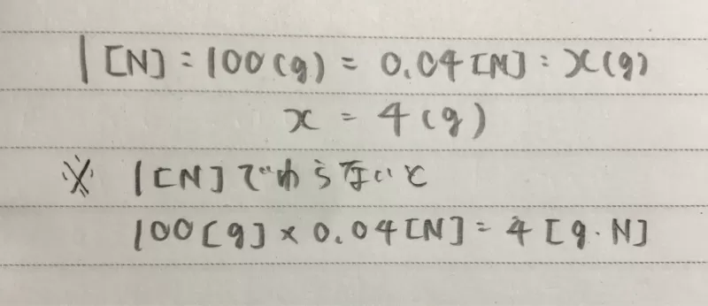 また. 質量 100g の物体にはたらく重力の大きさを1N とする<