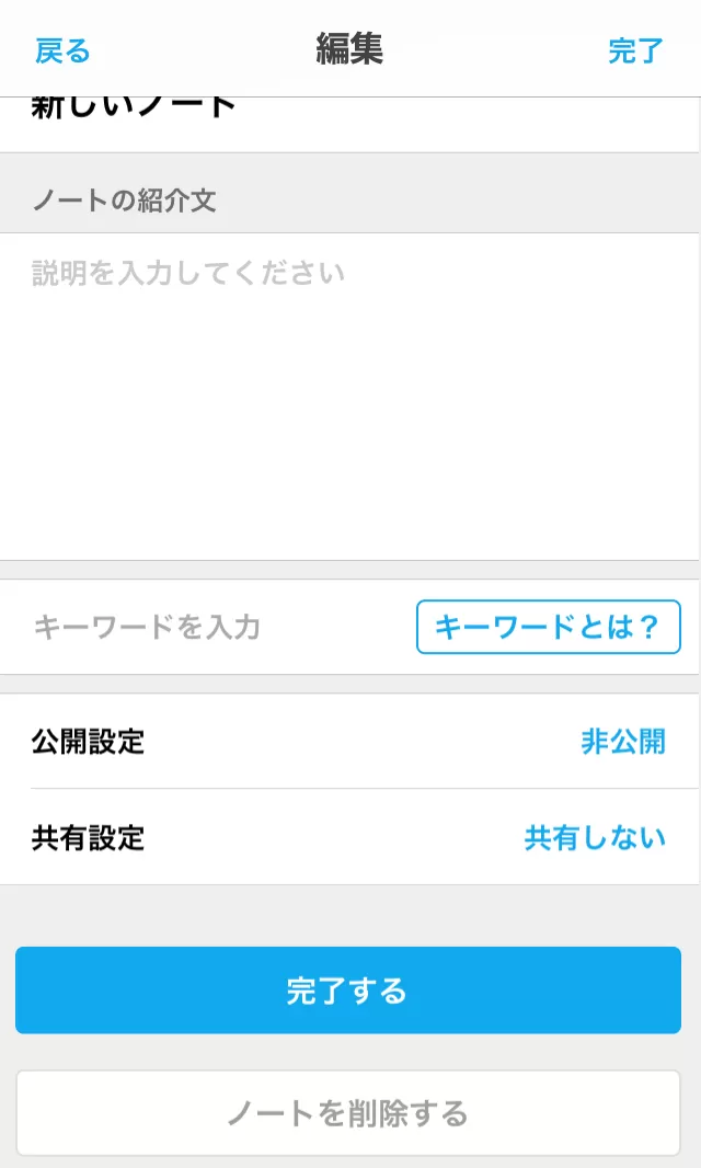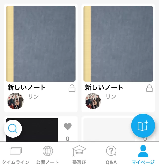 次に、ノートになるので、また右下にあるペンのマークを押していただくと、ノートを作る・変更する画面に変わります。