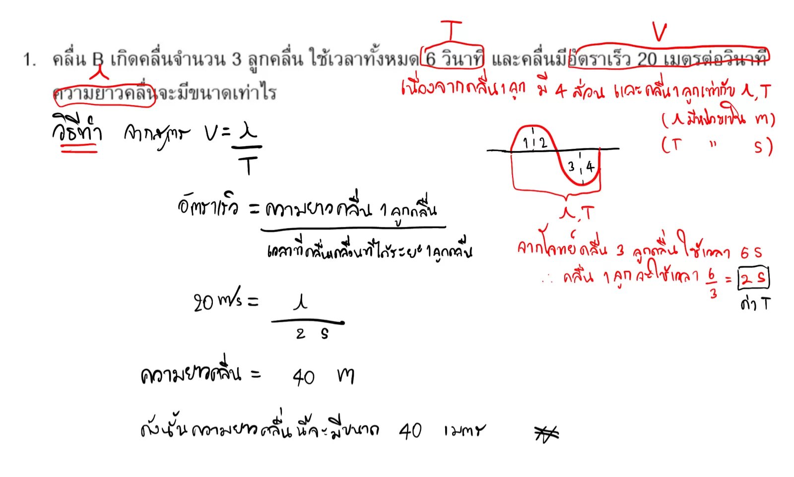 1. คลิน 8 เกิดคลื่นจํานวน 3 ลูกคลิน ใช้เวลาทั้งหมด 6 วินาที และคลื่นมีอัตราเร็ว 20 เมตรต่อวินาที
