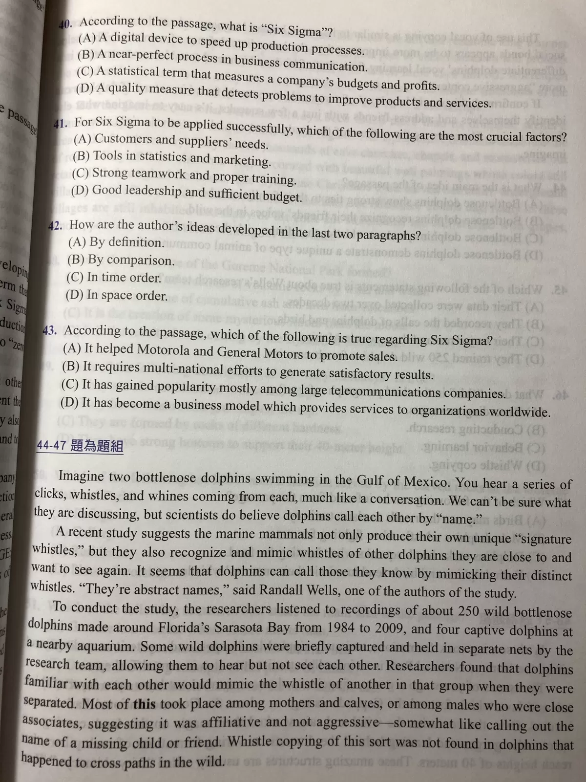 ductio 43. According to the passage, which of the following is true regarding Six Sigma?