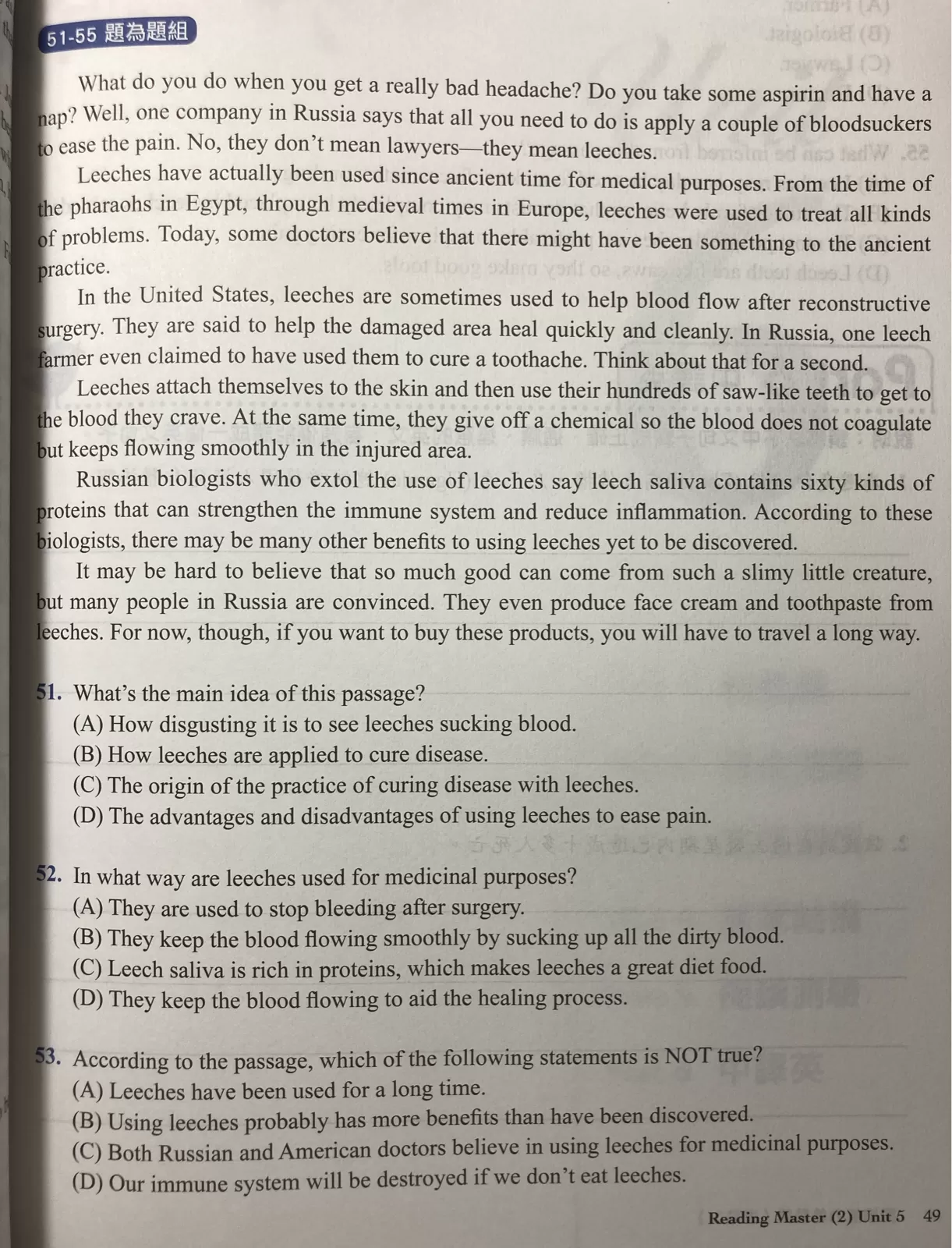 Reading Master (2) Unit 5