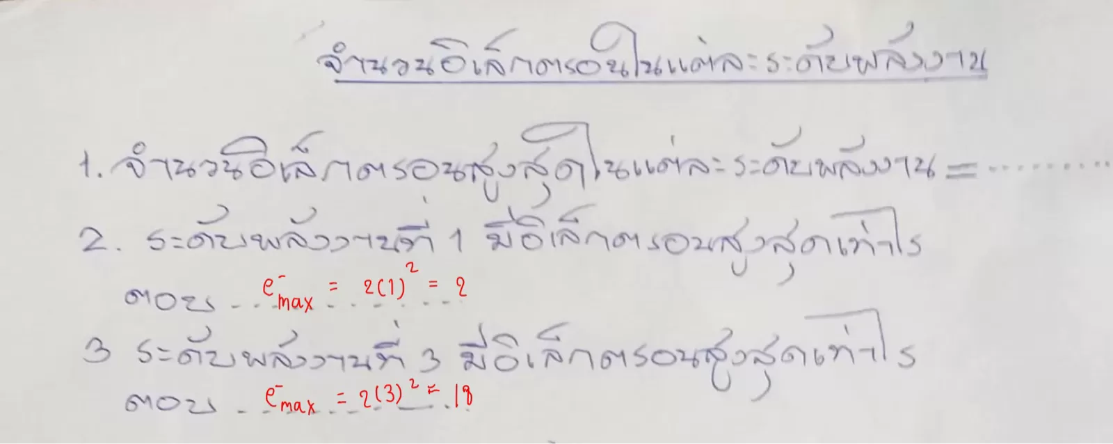 2 ระดับพลังงานที่ 3 มีเล็กตรอนท่ดเท่าไ5