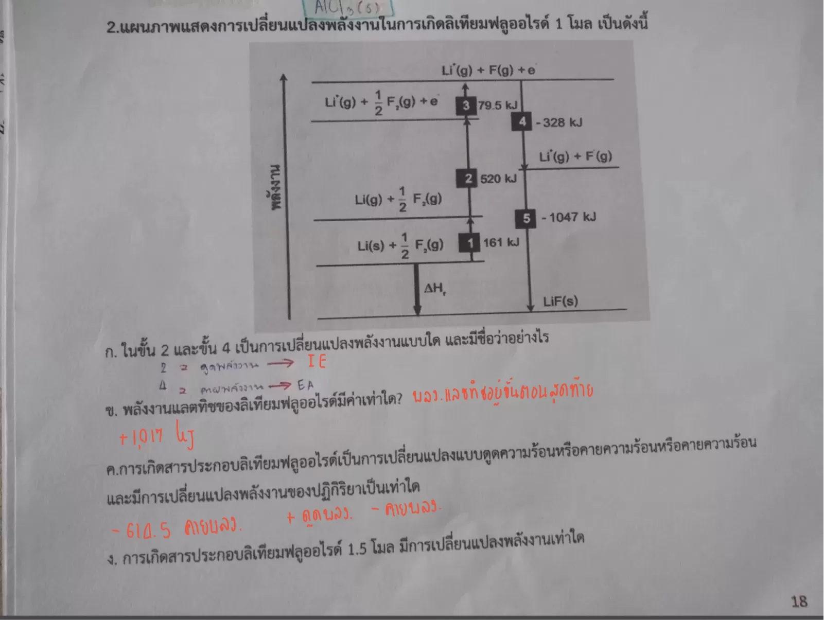 ค.การเกิดสารประกอบลิเทียมฟลูออไรด์เป็นการเปลี่ยนแปลงแบบดูดความร้อนหรือคายความร้อนหรือคายความร้อน