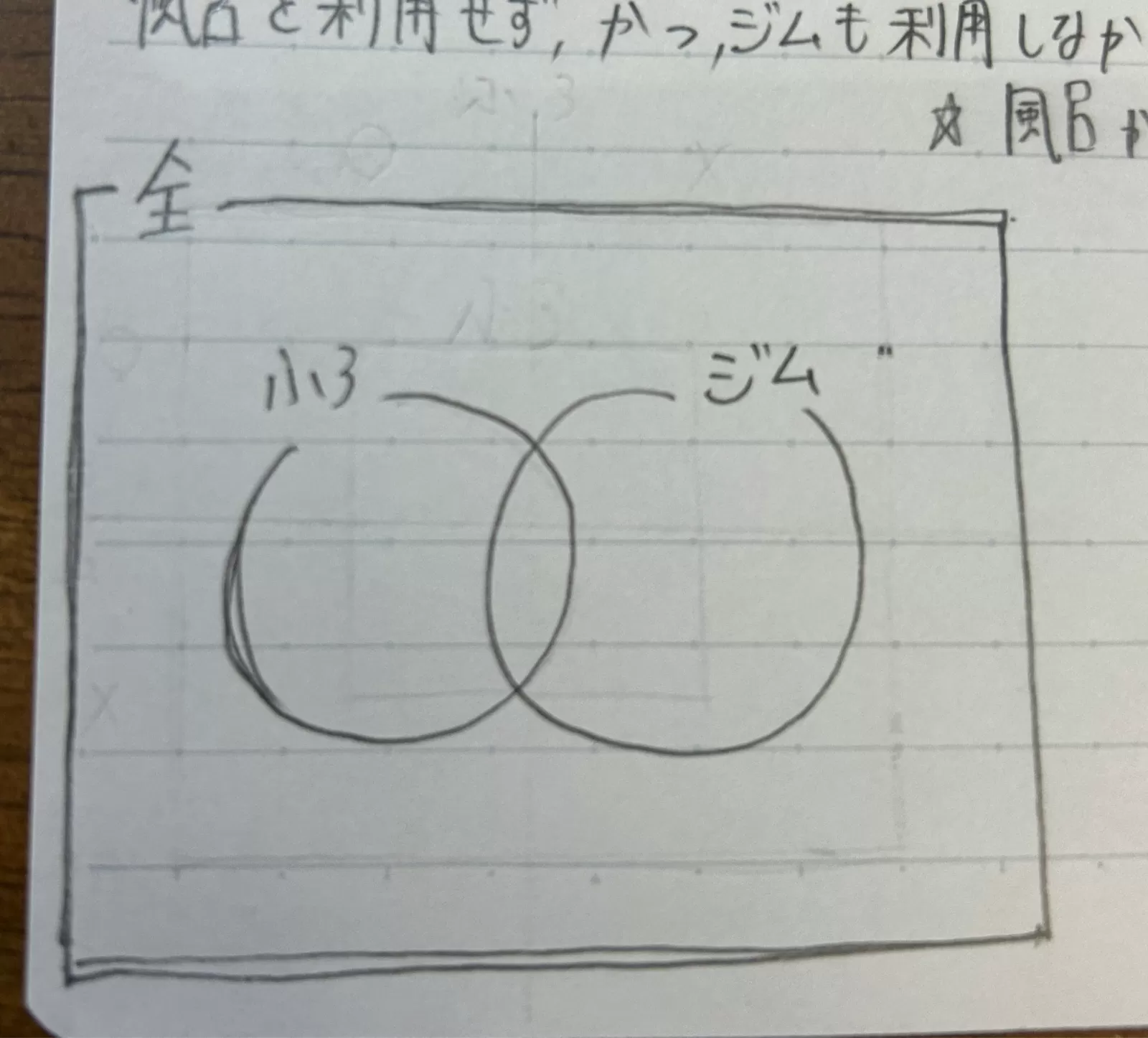 _ベン図は、風呂に入り、かつ、ジムを利用した、など、重なる場合がある場合に使用します。
