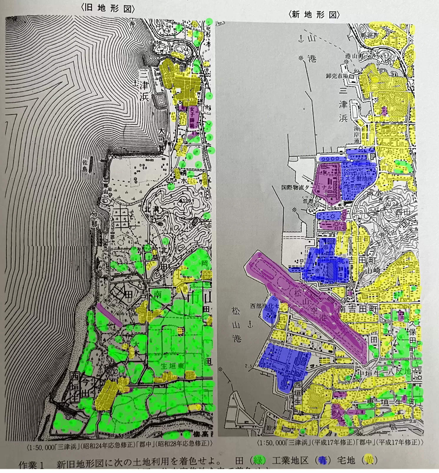 公共施設は、どこまでが公共施設かわかりませんが、とりあえず、空港、学校などは公共施設かなと考えて、紫で塗りました。