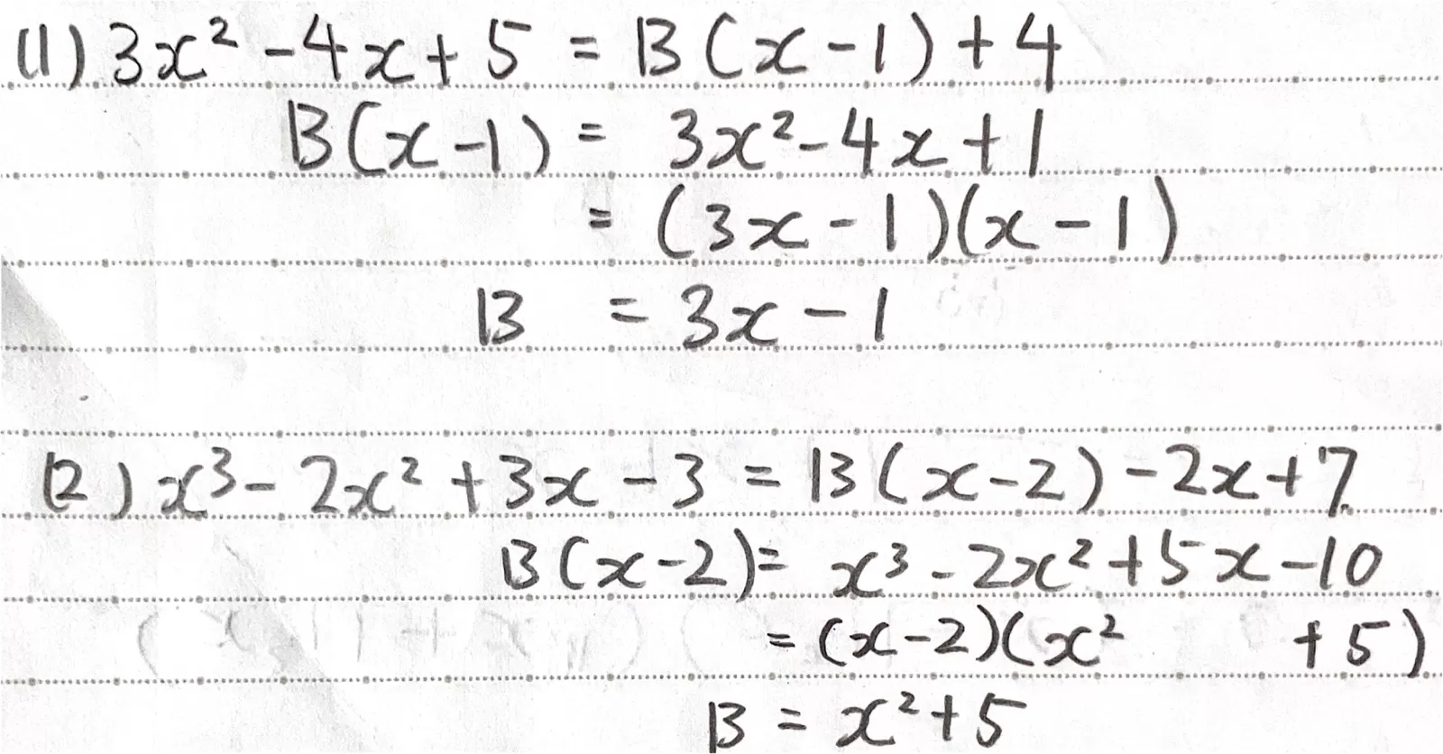 (1) 3x²-4x+5をBで割ると,商が x-1, 余りが4