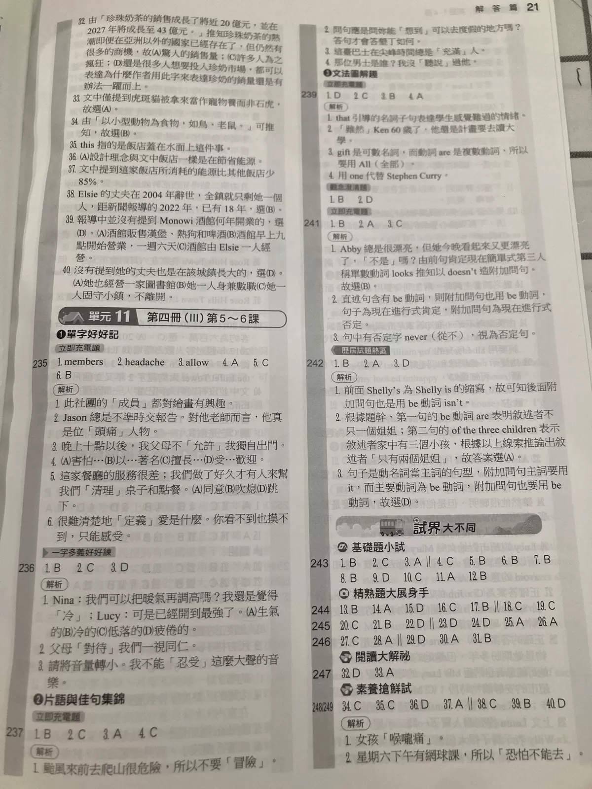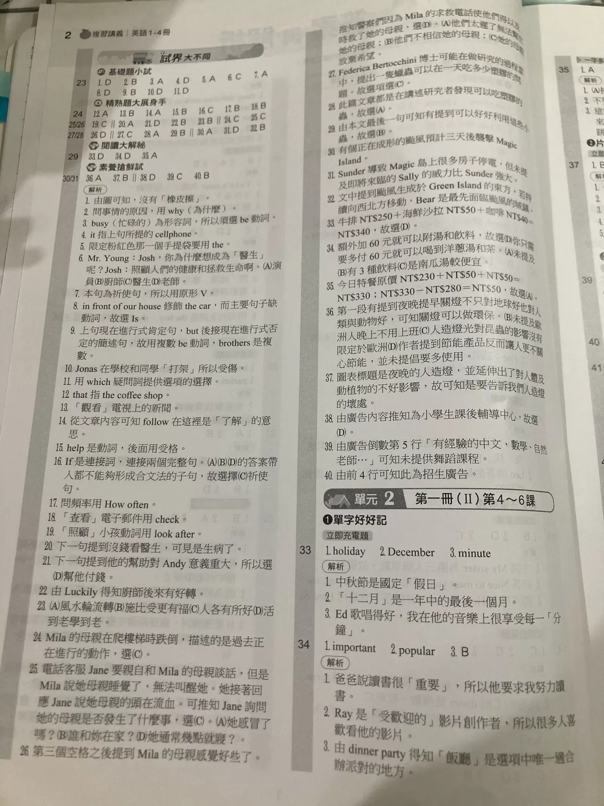 請問有人有113升高中版本的橘子複習英文講義1-4冊的解答嗎? 寫完想對答案但不見了