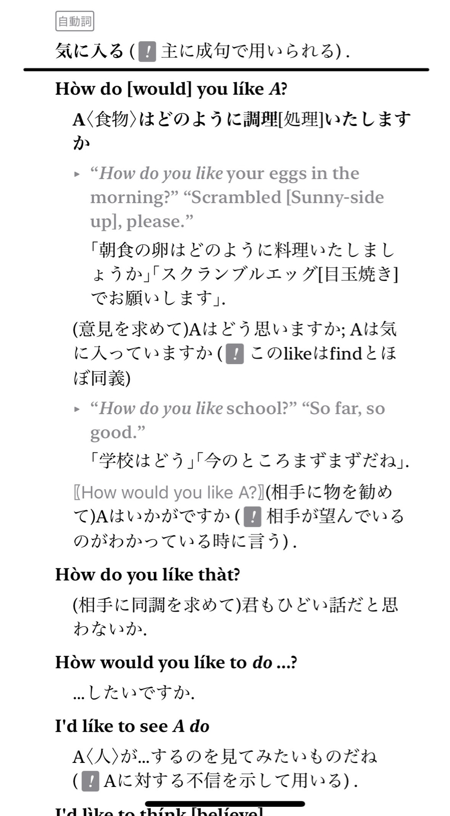 wisdom英和辞典の、自動詞likeの用法を載せます。