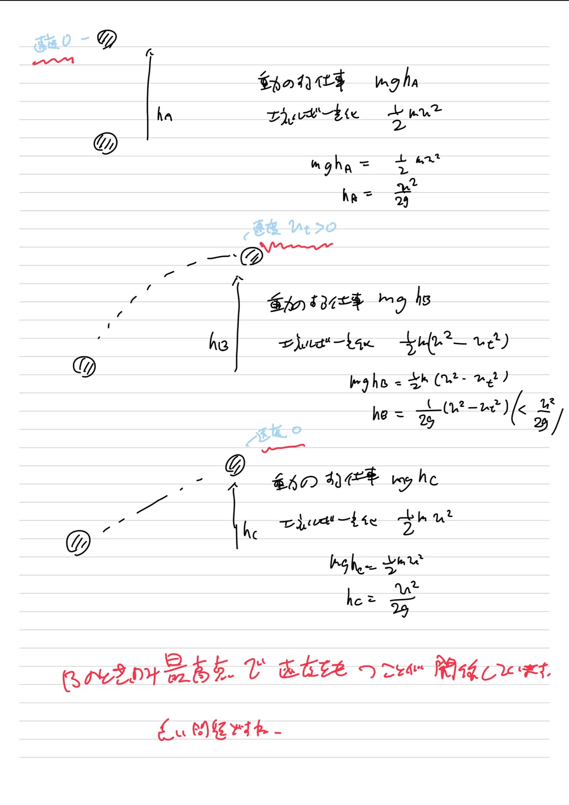 運動エネルギーで考えると確かにそうなんですが、vcos45で投げた様に見えるものは同じ高さに上がるのがおかしいのは、、どこかに考慮漏れがあるのでしょうか?