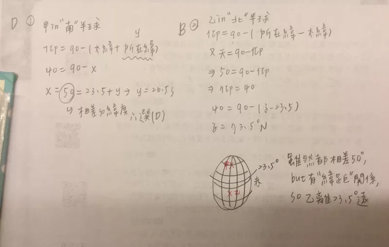 然後那個地球的圖我把甲乙寫反了