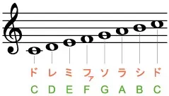写真に載っているのが全音符の「ドレミファソラシド」です!