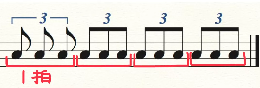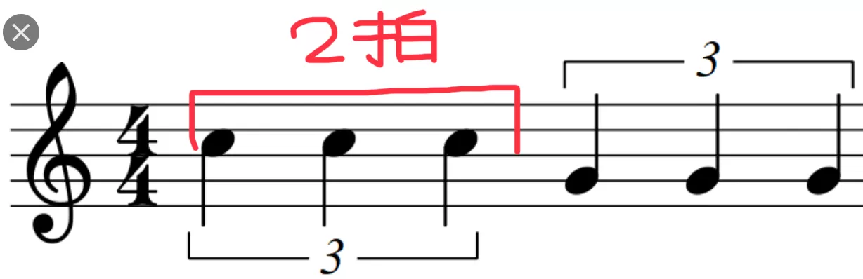 この ( 隅 ) は、4分音符 (.【 ) 拍分の童の長さになる。