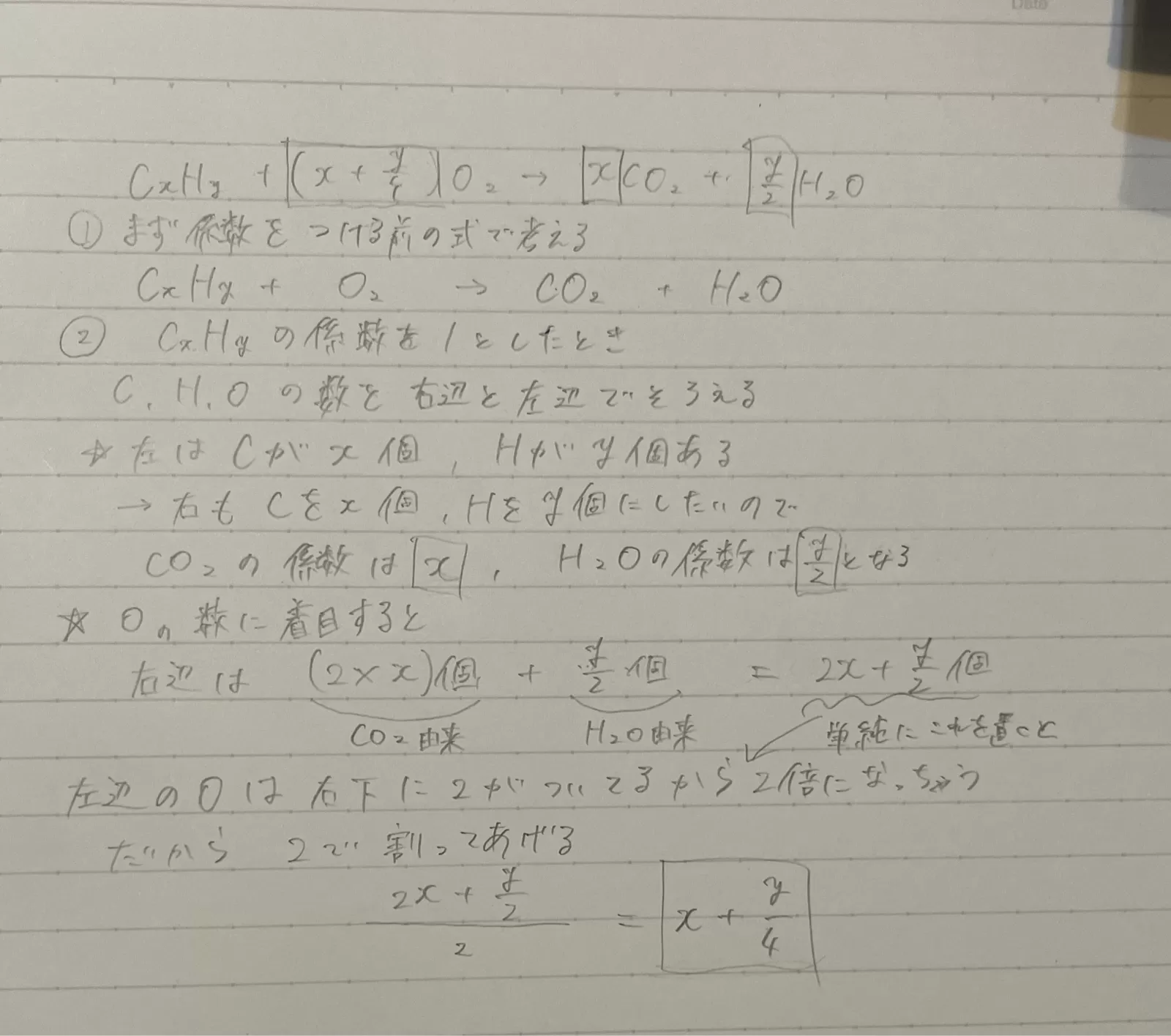 反応式の係数より,