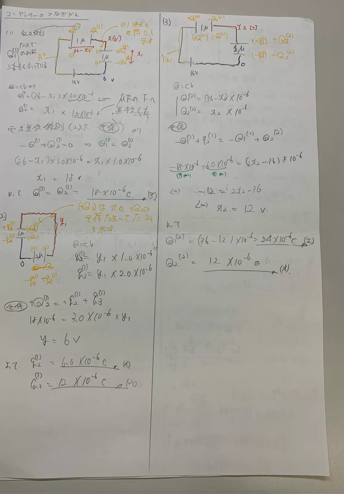 ×10-CC2 に蓄えられる電荷はケ×10-C C3 に蓄えられる電荷は